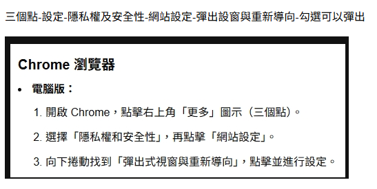 開啟google彈跳視窗圖示說明